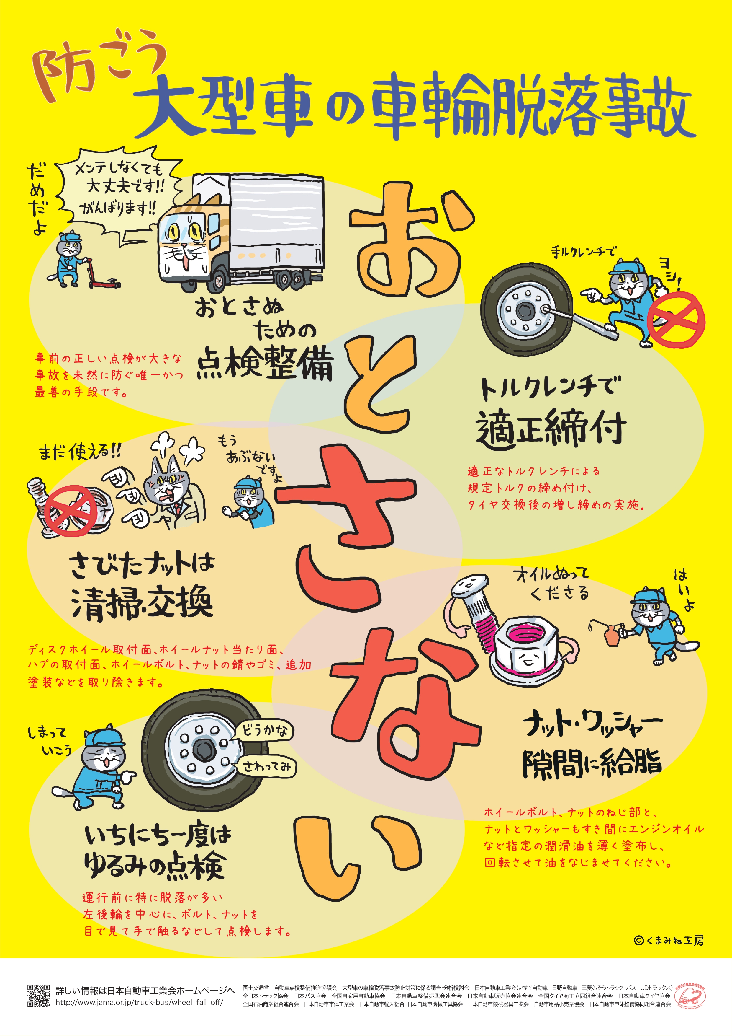 国土交通省では、大型車の冬用タイヤへの交換時期に車輪の脱落事故が急増する傾向を踏まえ、令和7年10月から令和8年2月にかけて、冬用タイヤ交換時の確実な作業の実施を呼び掛ける「大型車の車輪脱落事故防止キャンペーン」を実施しています。
